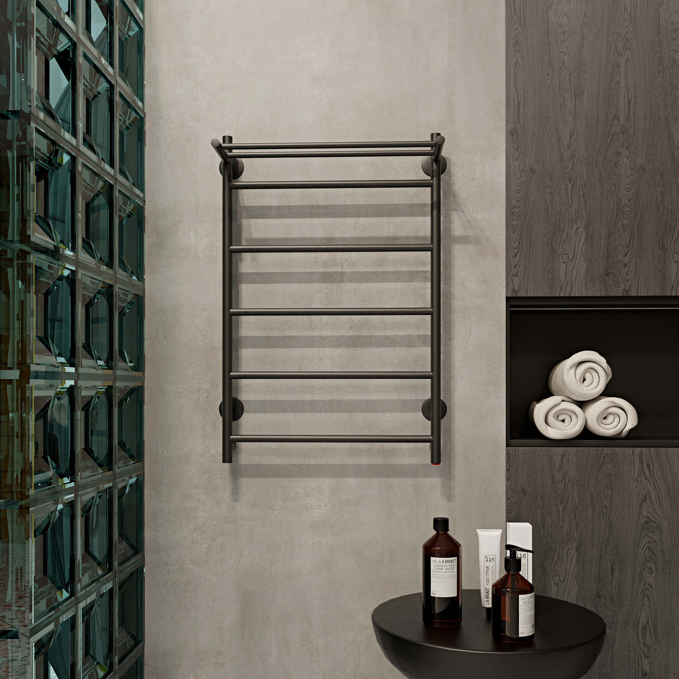 Полотенцесушитель электрический INDIGO Line с полкой в цвете «Черный Муар». Универсальная модель отлично справляется со своими задачами: сушит текстильные изделия, обеспечивает комфортную атмосферу, предотвращает появление плесени и повышенной влажности в ванной комнате. Полотенцесушитель с полкой оснащен кнопкой включения внизу правой стойки. Универсальность изделия предусматривает подключение через прямой провод, который переставляется на нужную вам сторону или скрытое подключение без покупки дополнительного переходника. Длина прямого провода 1,1 метра. Изделие имеет полку для большего комфорта и компактного хранения текстильных изделий. Специальная технология окрашивания обеспечивает равномерность нанесения и матовость. В комплектации идут 4 телескопических держателя, комплект монтажа и гарантийный паспорт. Полотенцесушитель INDIGO Line с полкой застрахован и имеет гарантию 3 года.