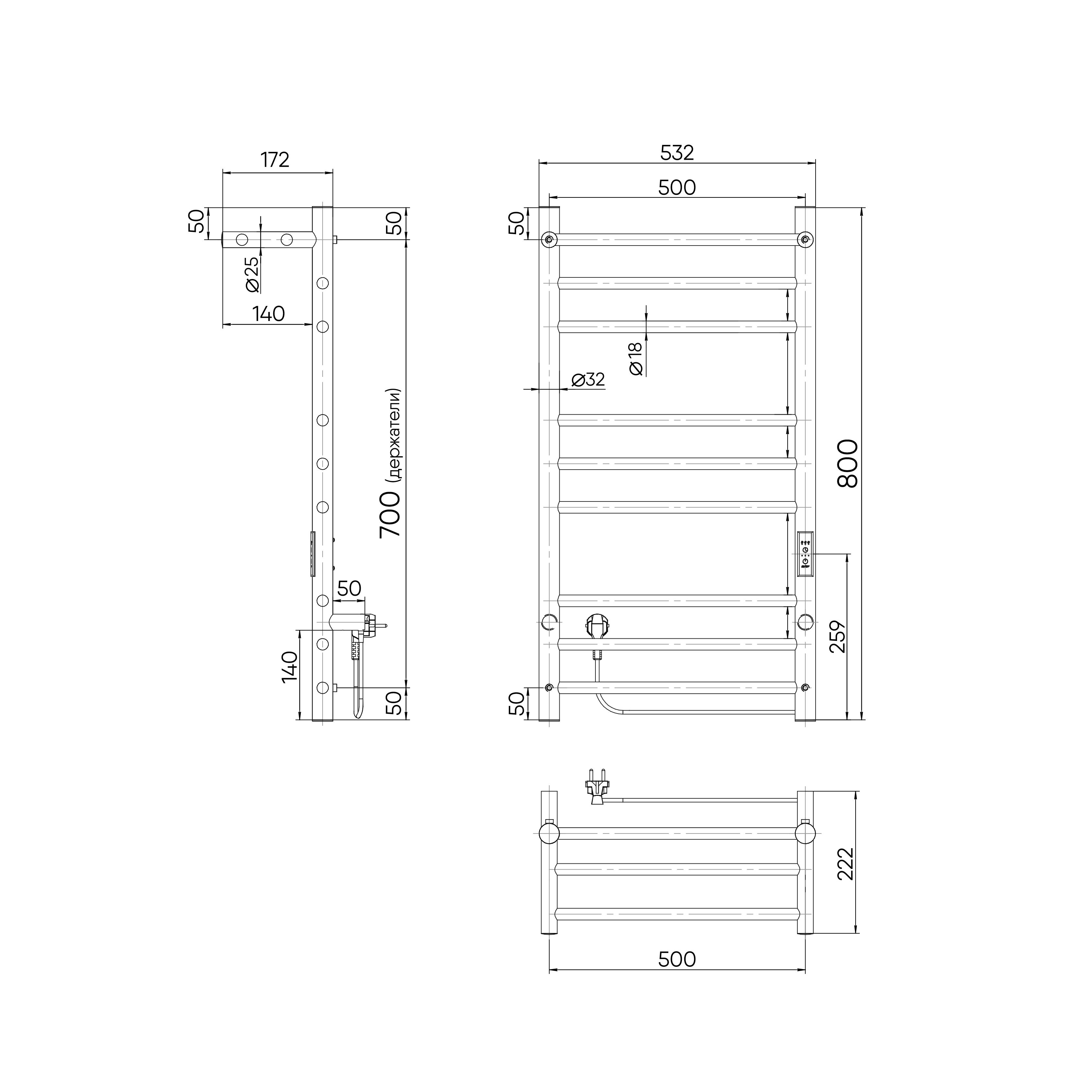 Полотенцесушитель электрический - 1 шт, паспорт изделия - 1 шт, комплект для монтажа - 1 шт, держатель телескопический - 4 шт. |