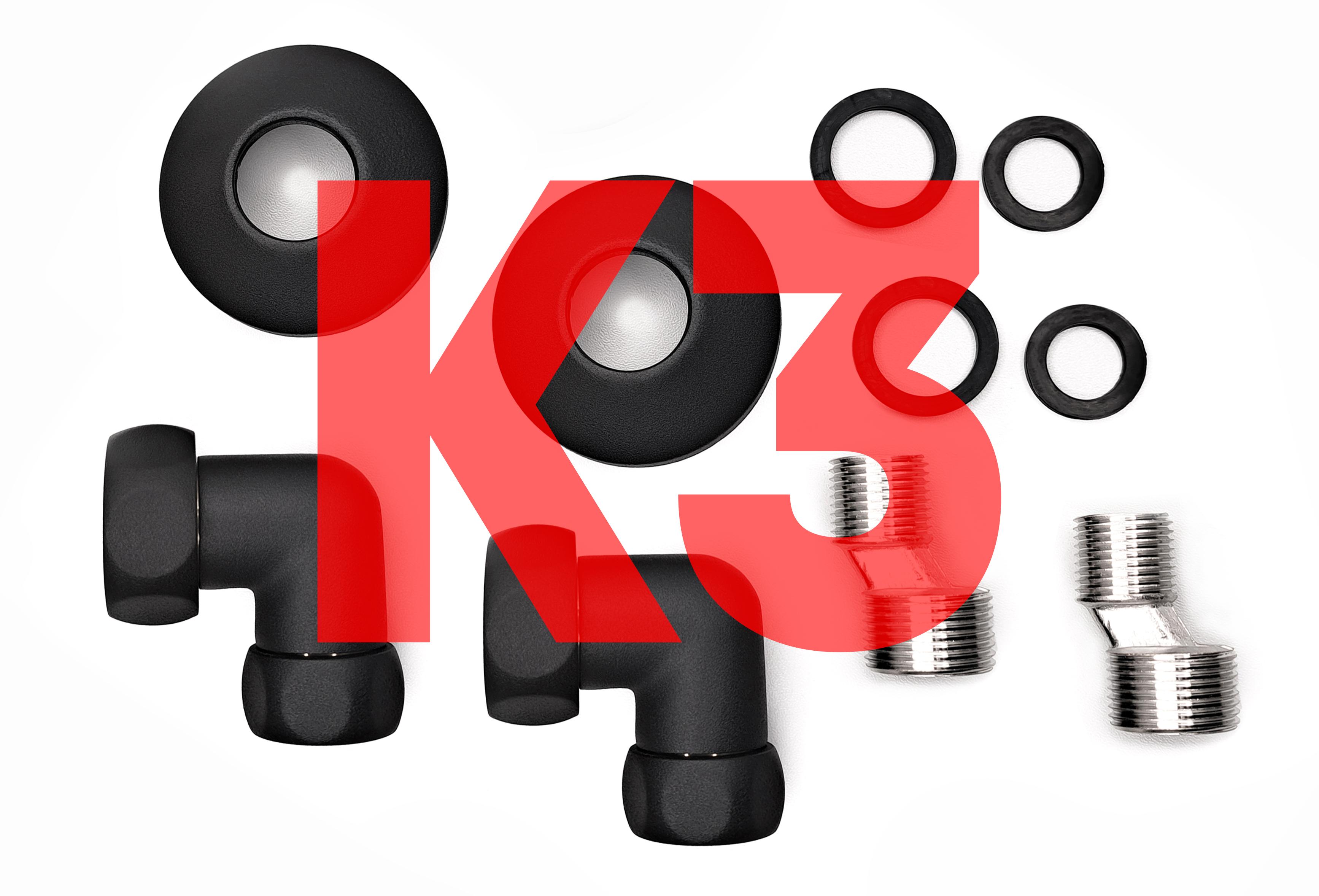 В комплекты К3 входят: 2 угловых соединения, эксцентрики 2 шт, 2 отражателя и 4 уплотнительных кольца. В наличии комплекты в цветах: хром, белый матовый и «Черный Муар».